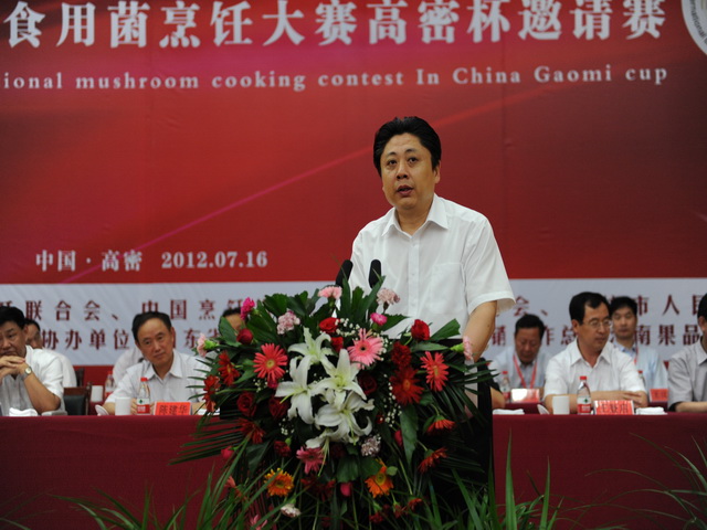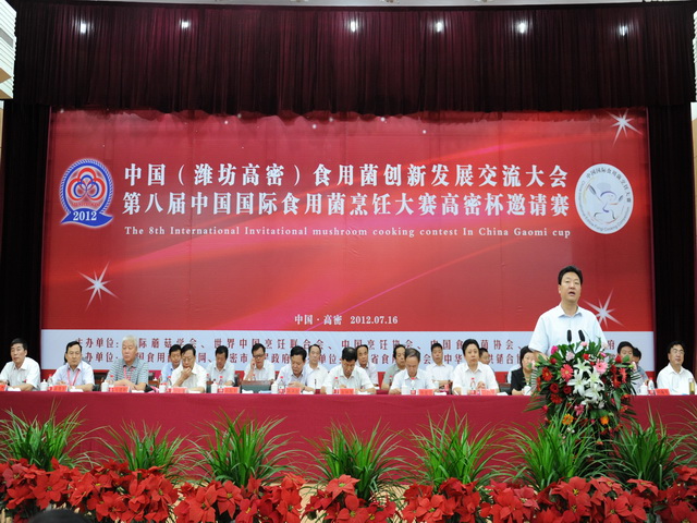 716日,中国(潍坊高密)食用菌创新发展交流大会暨第八届中国国际食用菌烹饪大赛高密杯邀请赛在市会议中心隆重开幕。中国食用菌协会会长、国际蘑菇学会副主席张祥茂,农业部农村经济研究中心党组书记陈建华,山东省政府办公厅巡视员高洪波,山东省供销社党组书记、理事会主任王艺华,潍坊市委常委、副市长孙起生等领导出席开幕式。会上代表们参观了食用菌创新发展特色产品展销,观看了食用菌烹饪大赛团体赛作品展,并统一乘车实地观摩了保益食品、惠德农产品、鸿基生物科技等食用菌生产企业及基地。